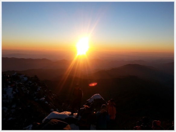 실로 오래간만에 맞는 천왕봉 일출입니다. 감개무량하며 숨이 멎을듯한 감동이 밀려옵니다. 힘차게 솟아 오르는 태양의 기가 가슴속으로 파고 들어옵니다. 나는 지금 이순간 세상에서 가장 행복합니다. 잠시나마 생각을 멈췄습니다.