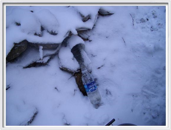 만일 장터목 산장을 이용해서 하루를 보낼 요령이라면 겨울 가뭄으로 산장 근처에는 식수가 없다는 것을 염두에 두어야겠습니다. 산장 매점에서 구입할 수가 있지만 그 마저도 시간내에 도달할 수 없으면 식수 땜에 큰 낭패를 당할 것입니다.