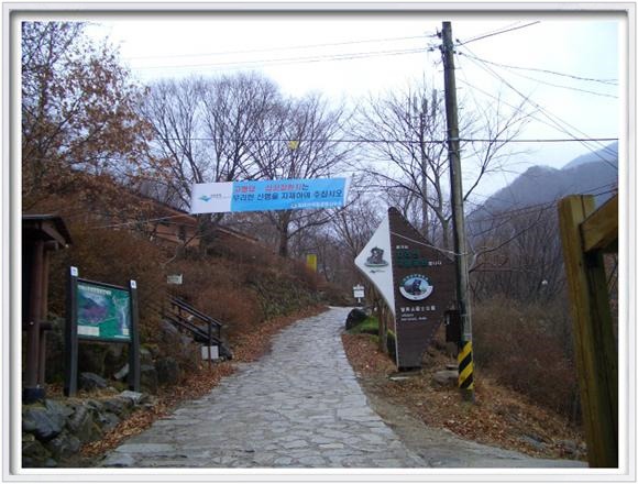 백무동 탐방안내소 앞에서 지난번에는 세석을 향했었고 이번에는 장터목 방향입니다. 출발(10:00)과 동시에 때맞추어 빗방울이 떨어지더니 채 500m를 진행하기도 전에 빗방울이 굵어집니다. 갑자기 경만과 울 마눌님 얼굴이 또 한번 나타났다 스쳐 지나갑니다.