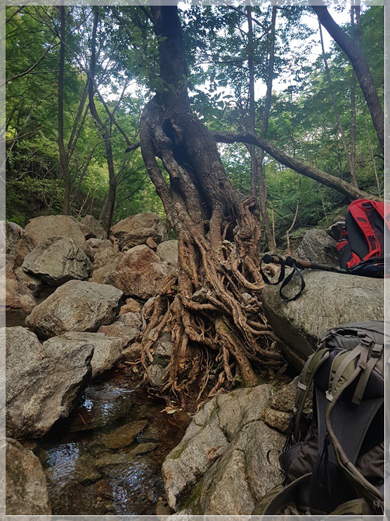 계곡을 따라 올라오신 그 산님을 따라 내려가면 아주 쉬울 것이라 생각했는데 자꾸 엉뚱한 방향으로 내려가고 있습니다. 오히려 우리가 계곡의 길을 찾아 그 분의 하산을 도와 주었습니다. 간장소 근처에서 선을 넘어 뱀사골계곡 등산로에 합류한 후 정말 부지런히 걸었습니다. 가도가도 끝없는 길입니다. 이미 인적이 끊긴지 오래되었으니 뱀사골 알탕에 도전했습니다. 그 후로 감기에 걸려 버렸습니다.