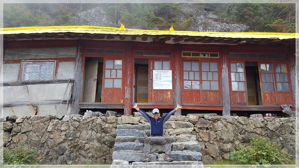 반야봉 정상에서 휴식을 취한 후 잘못하는 줄 알지만 넘지 말아야 할 선을 넘어 중봉으로 향했습니다. 중봉 헬기장에서 작은 구상나무 두 그루가 있는 오른쪽 길을 따르니 노란 지붕의 묘향대가 나타납니다. 십 수번의 화대종주길에 그토록 가보고 싶어 마음으로 안달 했던 그 묘향대를 오늘에서야 비로써 발길을 했습니다. 묘향대는 우리나라에서 가장 높은 곳에 위치하고 있는 암자이기에 정말이지 꼭 한번 들러보고 싶었던 곳입니다. 묘향대 부처님을 알현하고 호림스님께도 인사했습니다.