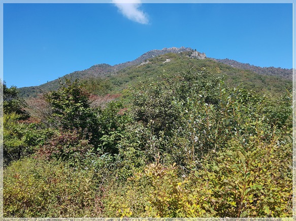 개천절이란 이름에 걸맞게 천왕봉 정상이 훤히 보일 정도로 새파란 하늘이 열렸으며 중산계곡의 물 흐르는 소리는 아주 청아하게 들려 발걸음이 가볍습니다. 산행하기에 아주 안성맞춤 격인 가을날입니다.