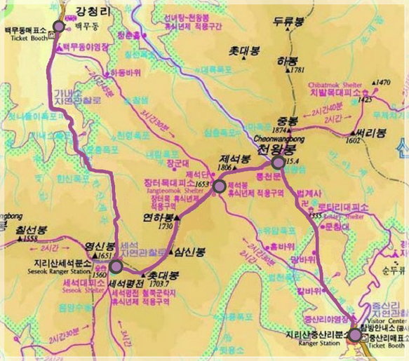 ◈ 산행 여정 : 백무동 탐방안내소→세석대피소→장터목대피소→천왕봉→중산리 탐방안내소
