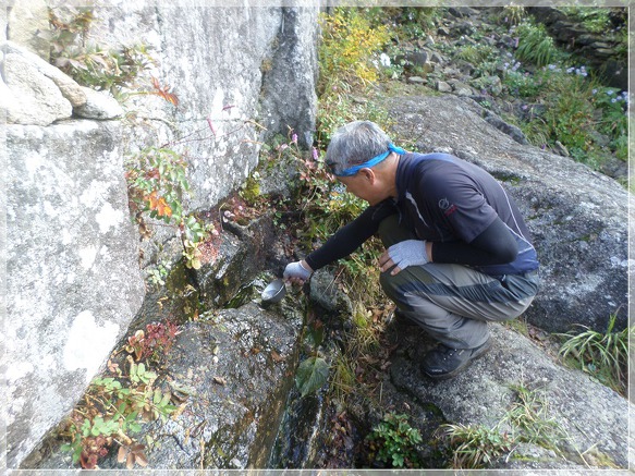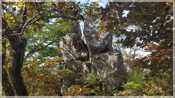 음양수에서 잠깐 물맛을 봅니다. 신기하게도 양수는 따뜻하고 음수는 차갑습니다. 음양수를 합쳐 마시면 어딘지는 모르지만 몸에 좋다고 하니 한잔 가득 마셨습니다. 다들 집에 돌아가면 좋은 일이 있을 것이라 기대합니다. 약 3년 전, 신랑각시 바위라는고 생각되는 내리막길에서 앙코가 앞으로 고꾸라지며 촛대뼈가 벗겨져 아파도 너무 아파서 엉엉 대성통곡을 한적이 있습니다. 조심조심 내려갔습니다. 남부능선길가의 산죽이 많이도 말라 죽어 있습니다. 100년에 한 번 꽃을 피운 후 이렇게 죽는다니 혹시 오늘 지나갈 묵계재 산죽밭도 이렇지 않을까 기대해 봅니다. 생각보다 길고 지루한 남부능선을 달려 삼신봉에 도착합니다.