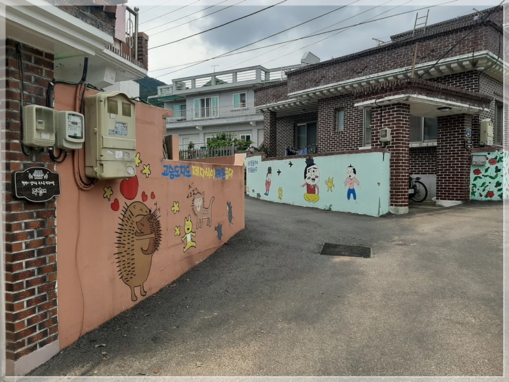 석포 안부에서 솔병산을 올라 보기로 했습니다. 솔병산 정상에서 석포 안부로 되돌아 내려오려니 약간 억울한 마음이 듭니다. 정상 주위를 둘러보니 이곳에서 바로 하산하는 길이 있으며 산악회 시그널이 많이 달려 있습니다. 처음에는 길이 선명했는데 언제부턴가 시그널들은 놓쳐버렸고 희미한 산돼지 길로 내려가고 있습니다. 그러다 임도를 만나게 되었고 본래 생각했던 하산지가 아닌 덕곡마을로 하산했습니다. 덕곡마을 골목 담벼락 벽화가 앙코의 기분을 좋게 만듭니다.