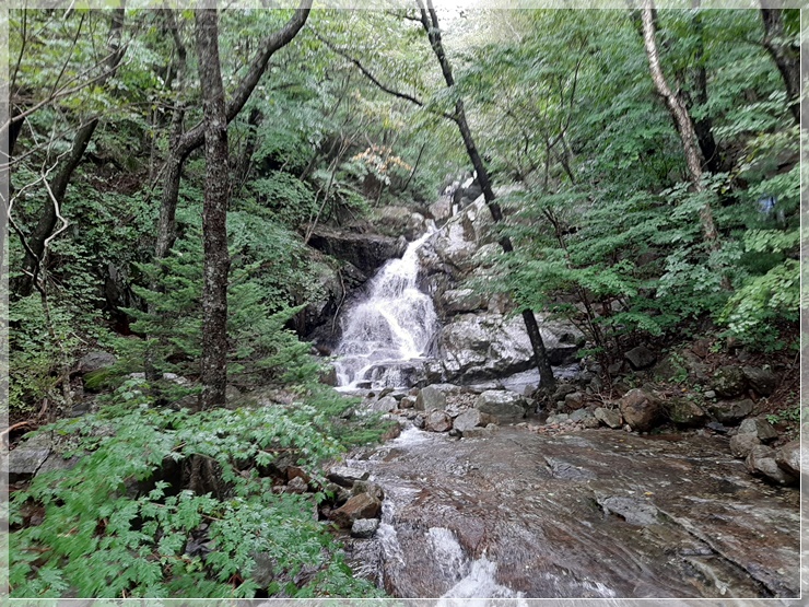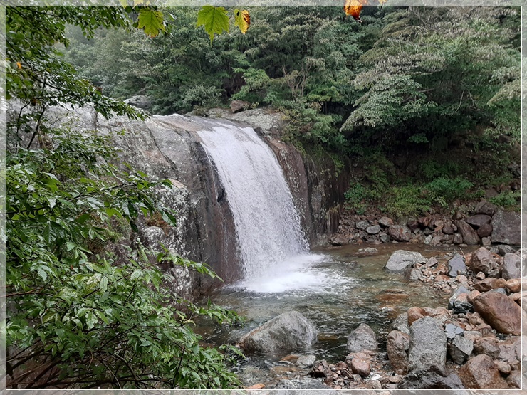 유암폭포 물줄기가 아주 시원스럽게 떨어집니다. 정터목에서부터 내리던 보슬비가 온몸을 적십니다. 비록 몸은 쩔었지만 간만의 지리산 산행이라 아주 마음이 상쾌합니다.