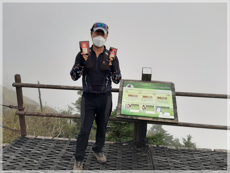 덕규형님 덕산 막걸리 도과에서 무려 3통이나 구입합니다. 1통은 산행 중, 2통은 각자 집에 가지고 가잡니다. 평소 같았으면 법계사에 들러 보았을 것인데 그냥 곧바로 천왕봉으로 향했습니다. 천왕봉 오르는 길에 내내 하늘이 흐렸었는데 천왕봉 정상에 올라서는 그 순간만 새파란 하늘이 열립니다. 참말로 우린 덕 많이 쌓고 살았나 봅니다.