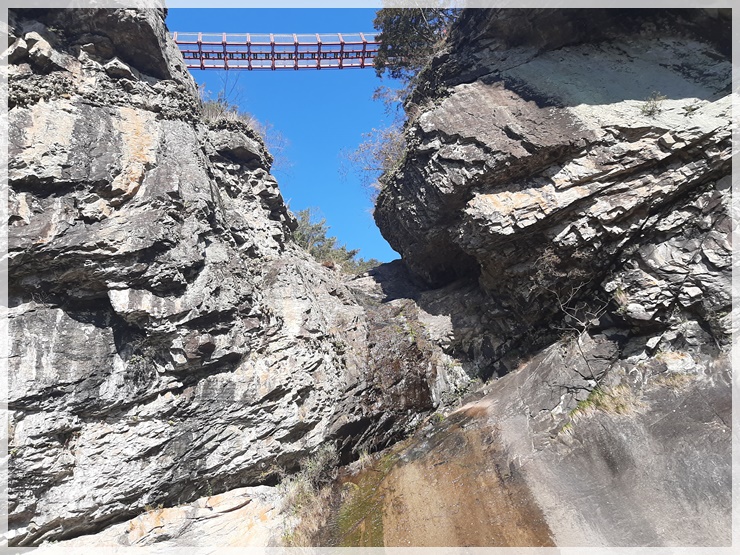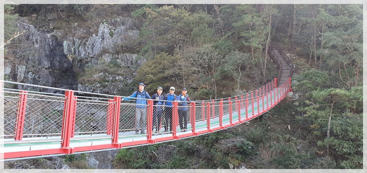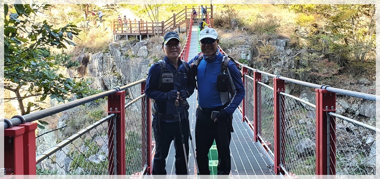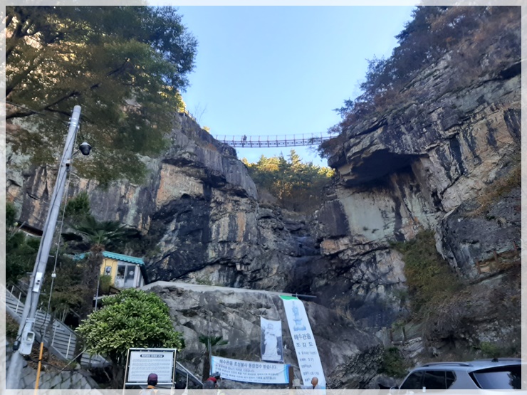 구절산 폭포암 주차장에 도달하니 이전에 보지 못했던 출렁다리가 눈에 들어옵니다. 전국이 케이블카와 출렁다리 붐입니다. 앙코의 마음에 들지 않지만 출렁다리로 인해 이곳을 찾는 사람들이 많아졌다 하니 설치 자체는 성공한 것으로 추정됩니다.