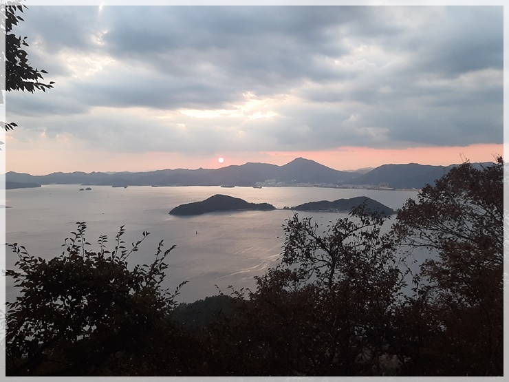행정구역이 통영인 이름도 생소한 어의도와 수도가 눈 앞에 있습니다. 이 섬들 사이로 가조도 앞바다가 노을로 붉게 물들 것을 예상하고 태양이 서쪽하늘로 넘어 가길 기다렸습니다.