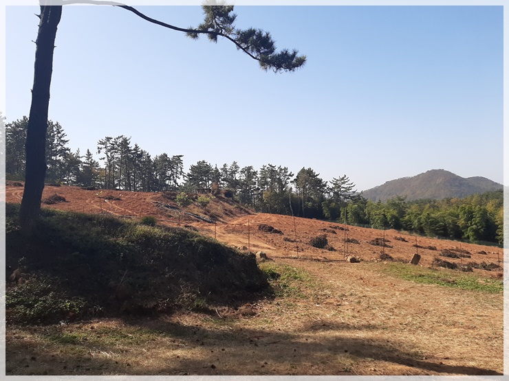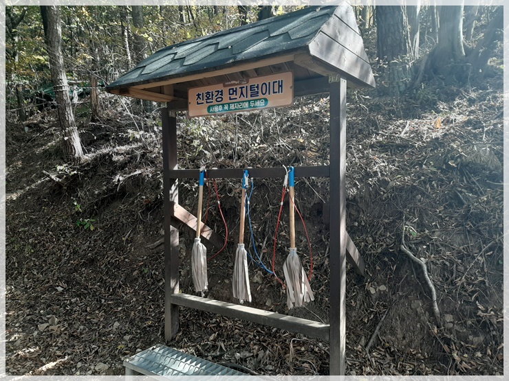 송정고개로 내려서는 산능성이가 완전 초토화되어 가고 있습니다. 거제시에서 무슨 관공서를 짓는다는데 대한민국 자연환경 파괴의 선구자감 입니다. 옥포고등학교 정문을 통과하여 후문으로 나갑니다. 코로나 시국에 민간인이 학교 경내를 통과함이 미안하지만 이길 외에는 방도가 없는 것 같습니다. 학교 후문 근처 친환경 먼지떨이대가 새롭습니다.