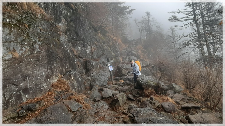 천왕봉 정상에 올라서니 바람이 아주 세찹니다. 빠른 걸음으로 장터목으로 내려갑니다. 언제나 그랬듯이 그곳에는 꿀이 있었습니다. 장터목을 출발하니 또 비가 내리기 시작합니다. 이번에는 비옷을 생략하고 후다닥 하산해 버렸습니다.