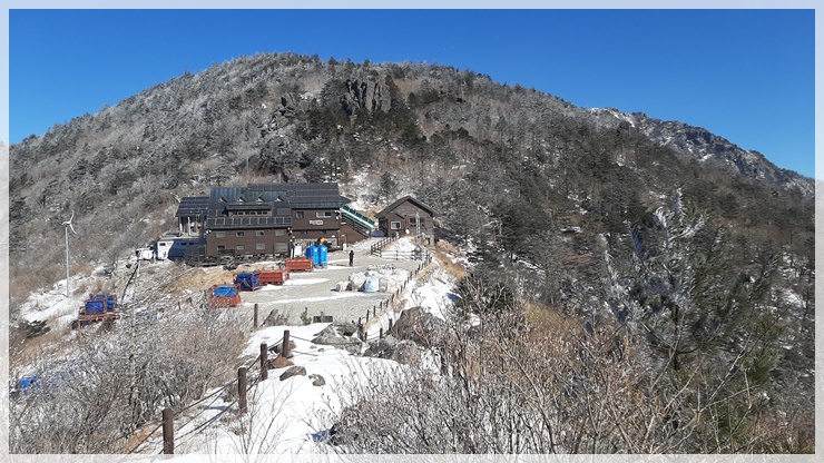 세석대피소 도달할 즈음 오후 2시가 막 지나갑니다. 이 시간 겨울이면 대피소 직원이 나와 더 이상 주능선 산행을 불허합니다. 우리야 거림 방향으로 하산할 예정이라 문제 없지만 내 생각에 겨울 산행을 즐기고자 하는 산님들에게는 조금 빠른 시간에 퉁행을 제한하는 것으로 보입니다.