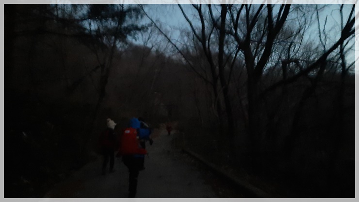 해가 오르는 새벽시간에 바람이 가장 세게 인다는 설이 있습니다. 날씨가 너무 추워 손발가락 끝이 아리아리하게 쓰려옵니다. 특히 아직 아물지 않은 오른손 네 번째 손가락이 더 시립니다. 산행 시작한지 30분경이 지나 아이젠을 착용했습니다. 순두류에서 출발한 덕분에 생각보다 빠르게 로타리대피소에 도착됩니다.