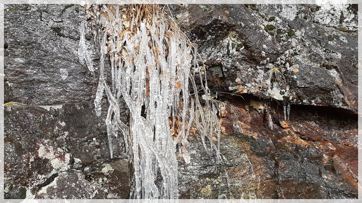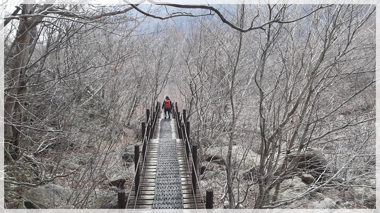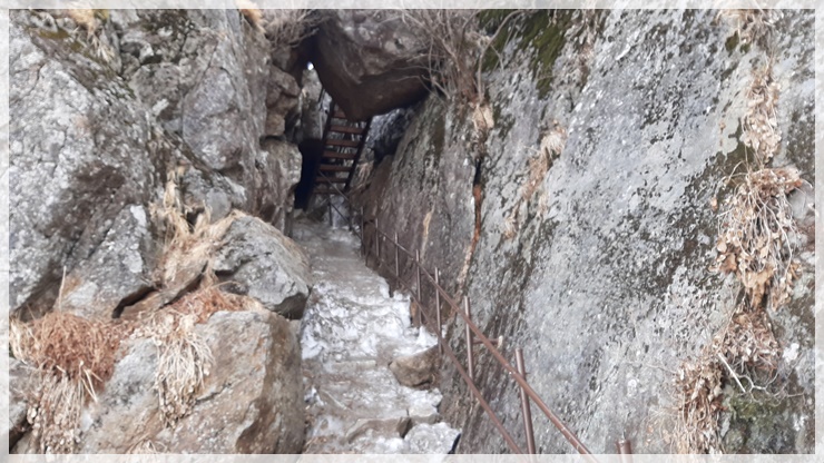장터목대피소에 머물고 있을 때는 몰랐습니다. 태풍급 회오리 바람이 불고 안개로 한치 앞도 보이지 않는 기상이 펼쳐져 있습니다. 오늘 서둘러 천왕봉을 오르기를 정말 잘한 것 같습니다. 유암폭포 근처에 내려설 때는 싸락눈까지 내립니다.