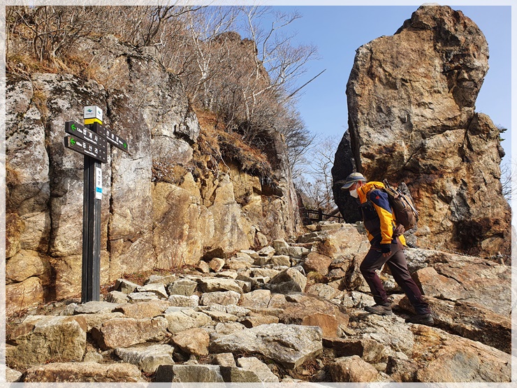 로타리대피소에는 바람소리가 들립니다. 이 소리는 겨울소리입니다. 개선문을 지날 즈음에는 손끝이 시려오더니 천왕봉 정상에는 머리가 빠개질듯한 세찬 바람을 맞습니다. 사진을 찍는 둥 마는 둥 장터목 방향으로 후다닥 달려 바위 뒤에 숨었습니다.