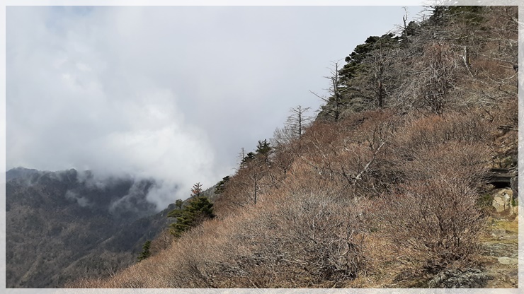 ■ 천왕봉 오르면서 본 장터목 방향의 운무