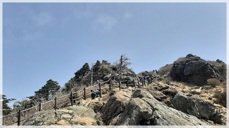 망바위에서 잠깐의 휴식으로 숨을 돌리고 일행들의 속도조절을 요청했습니다. 안산에서 사업한다는 모 사장님이 지리산을 엄청 올랐다고 자랑하고 자신의 삶에 대해 자존감이 대단하시며 연륜이 있어 보입니다. 연세를 물어보니 앙코보다 세 살이나 아래입니다. 그 사장님 갑자기 사진을 좀 찍어야겠다면서 뒤로 빠집니다.