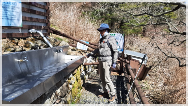 통천문 바로 아래에 아직 덜 녹은 눈이 남아있습니다. 여느 때와 마찬가지로 장터목대피소 벤치에 바람이 너무 강합니다. 취사장에서 한참을 우리들만의 만찬시간을 가졌습니다. 유암폭포와 법천폭포 두 곳 모두를 들렀습니다. 법천폭포에 이동용 발전기 1대가 방치되어 있습니다. 덕규형님이 관심을 가져보지만 너무 무거워 어찌해 볼 수가 없습니다.