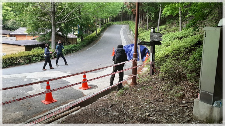 제암산 산행 들머리에 등로를 막아놓고 공사가 진행 중이며 전망대까지 공사용 자재가 길바닥에 널려 있지만 산행에 문제가 있는 것은 아닙니다. 힘든 길, 쉬운 길 구분되어 있지만 힘든 길만을 선택하여 올라갑니다. 같은 시간에 출발했던 5명의 여성 산님들 걸음걸이 장난 아닙니다. 정상까지 오르막길임에도 불구하고 우리 일행과 걸음 속도가 같습니다. 알고 보니 해남에서 야간 산악을 즐긴다 하시고 태달사와도 인연이 있는 것으로 보아 대한민국의 내로라하는 전문 산꾼들입니다.