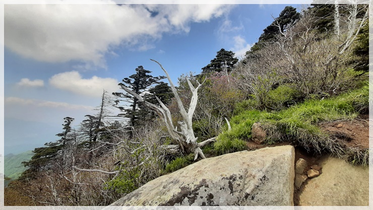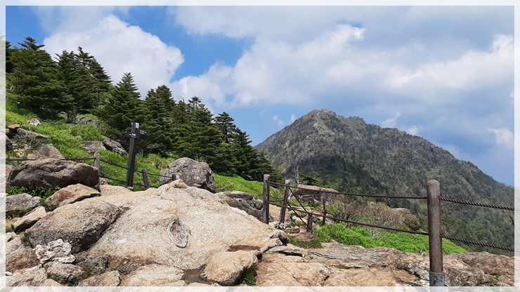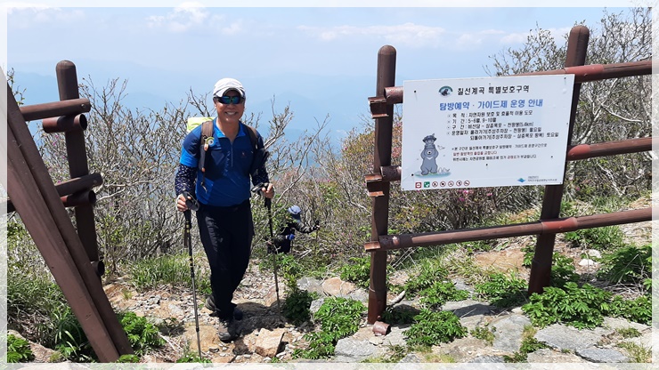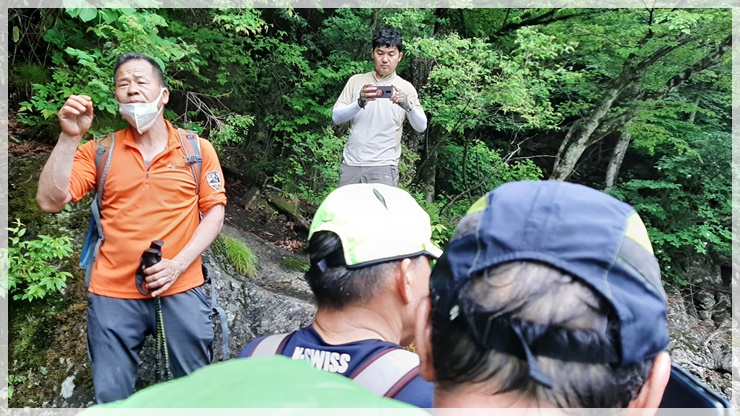 비선담부터 천왕봉까지는 비지정 탐방구간이기에 5, 6월과 9, 10월에 매주 월요일 인터넷예악을 거쳐 국공의 안내를 받아야 산행이 가능합니다. 애초 지윤형님 이름으로 예약되었으나 직장 사정상 불참을 통보해와 이전부터 칠선계곡 산행에 관심을 가지셨던 서팀장님으로 멤버가 바뀌면서 차량지원과 점심식사로 쑥개떡을 준비해 주셔서 든든하게 천왕봉 오를 수 있었습니다. 더더구나 수제 마스크까지 준비해 주셔서 엄청 고마웠습니다.