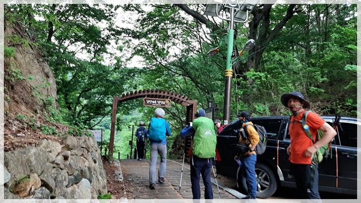 칠선계곡 추성리의 추차장에 제법 굵은 빗방울이 툭툭 떨어집니다. 우의를 준비하지 않아 걱정스럽긴 하지만 7시면 비가 그친다는 대한민국의 기상청 말을 믿어 보기로 하였습니다. 신통하게도 요즘 기상청 일기예보가 잘 맞아 떨어집니다.