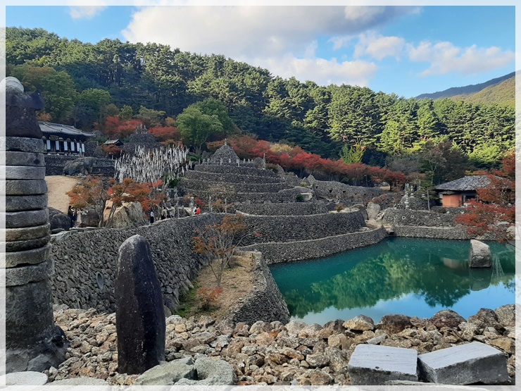 어디쯤에서 길을 놓쳤는지 모르지만 어느 순간 사람들의 발자국 흔적은 사라졌고 바위 계곡으로 내려가고 있었습니다. 고로쇠 호스를 따라 무작정 내려가니 삼성궁 경내로 쑤욱 들어갑니다. 평소 삼성궁 입장료가 너무 비싸 들어가지 않았던 곳인데 오늘은 운 좋게 공짜구경을 즐겼습니다. 청학동 근처 올 가을 최고의 단풍도 삼성궁 안에 있었습니다.