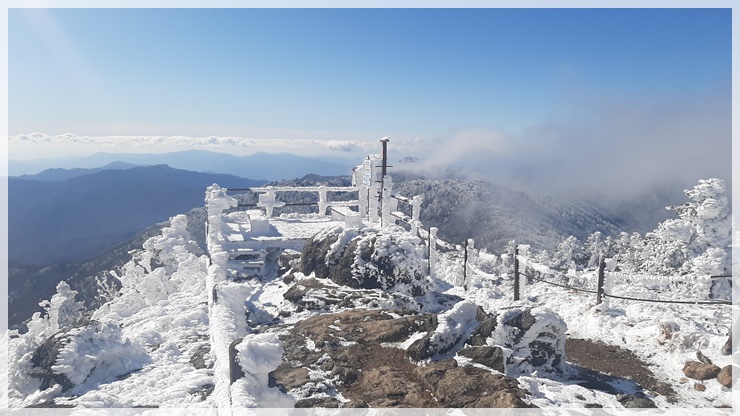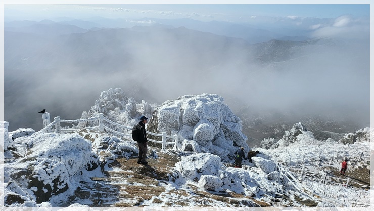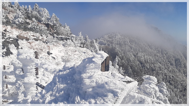 몇 일전부터 거제 날씨가 꾸리꾸리하고 비까지 내리고 있습니다. 그렇다면 틀림없이 지리산에는 눈이 올 것을 예상했습니다. 중산리에 들어서니 아니나 다를까 천왕봉이 하얀 구름모자를 쓰고 있습니다.