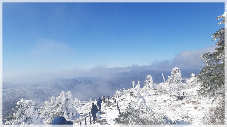천왕봉 정상에서는 한참을 기다려 인증을 했습니다. 천왕봉에서 장터목 가는 길은 겨울 지리산의 진면목을 보여주는 아름다운 길입니다. 우와! 우~와! 우~~와! 한마디로 까빡 죽여줍니다. 감동 그 자체입니다.