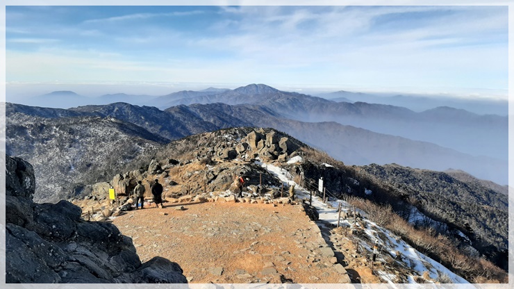 오늘 날씨가 왜 이럽니까? 날씨가 너무 따뜻해 장갑을 끼지 않고도 산행하는데 무리가 없고 천왕봉 정상까지 아이젠을 착용하지 않아도 올라갈 수 있습니다. 무엇보다 좋은 것은 천왕봉 정상에서는 기다리지 않아도 인증샷을 남길 수가 있습니다.