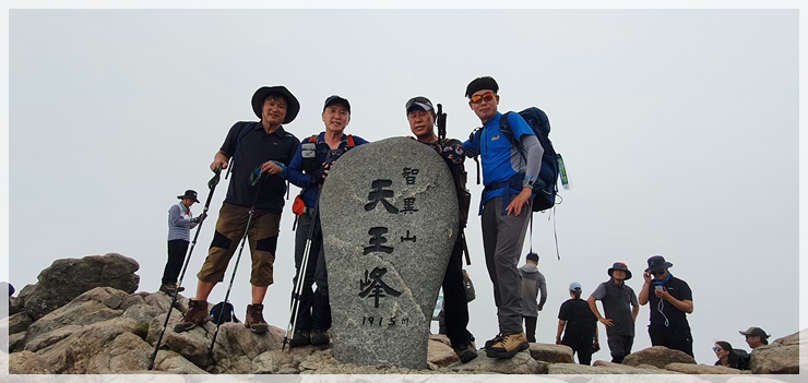 언제나 처럼 중산리 탐방안내소에서 칼바위, 망바위, 로타리대피소를 지나 천왕봉을 올랐다 장터목대피소에서 즐거운 시간을 가진 후 중산리로 원점회귀 했습니다.