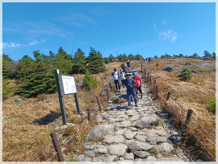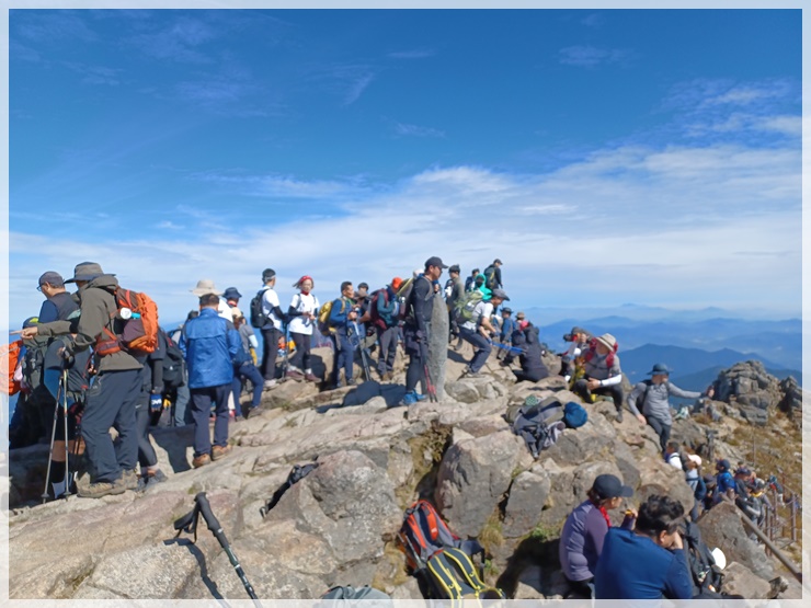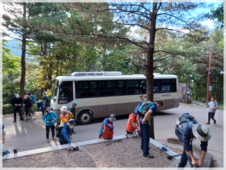 중산리 버스터미널에서 차량 출입을 통제해 산행 시작도 전에 호흡이 거칩니다. 아이고오~~. 무슨 사람이 이리 많나? 한참을 줄 서 기다려 버스를 두 대씩이나 보내고 나서야 우리 차례가 왔습니다.