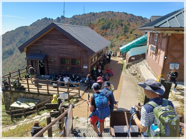 후다닥. 로타리대피소입니다. 개선문 지나 허벅다리 쥐가 올라옵니다. 뭔가 내게 체력에 이상이 찾아오는 것 같은데 잘 관찰해야 될 것으로 판단됩니다. 일단은 세월 탓으로 돌려야겠습니다. 천왕봉 인증은 패스하고 장터목대피소에서 한참을 눌러 앉아 놀았습니다.