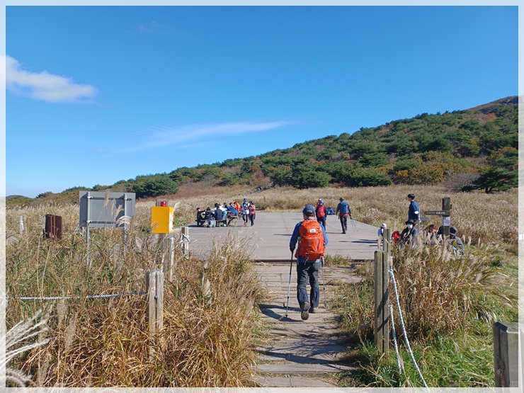오늘은 배내고개에서 출발하여 천황산, 재약산을 지나 사자평 억새평원을 지나는 편안한 산행을 계획했습니다. 능동산으로 올라갑니다. 목포 뚜벅이님들이 우리 뒤를 따라 올라옵니다. 능동산도 영남알프스의 일원이건만 1,000m까지 키를 올리지 못해 주연급에서 제외되어 유명세를 타지 못하고 있습니다. 능동2봉을 지나 쇄점골 샘터 물맛을 보고 얼음골 케이블카 정거장에 올라섭니다. 장터를 방불케 하는 샘물산장에서는 갑성이 가져온 홍어회 안주로 태화루 막걸리 두 통이 비워집니다. 지금 이 가을날에는 전국 어느 산을 가도 마찬가지겠지만 천황산과 재약산 정상에도 사람들로 가득 찾습니다.