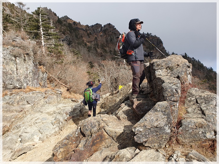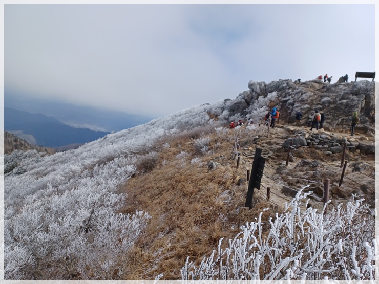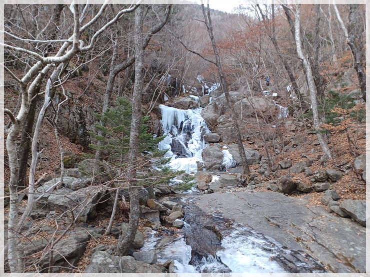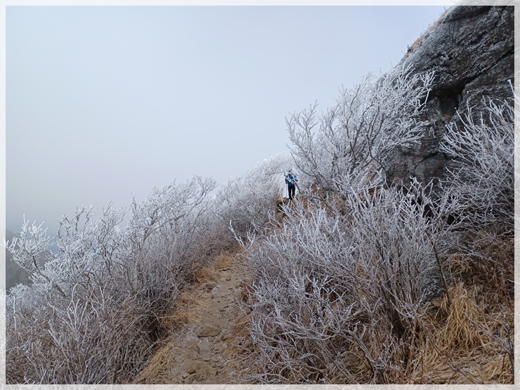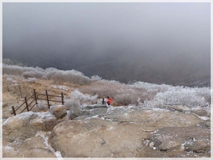 너무도 따뜻하고 포근한 기온 탓에 산행 초입 순두류계곡은 봄물 흐르는듯 계곡소리가 경쾌합니다. 올해는 도대체 언제쯤이면 겨울이 될는지 이마에 땀방울이 송알송알 맺힙니다. 망바위 근처에 도달하니 늦었지만 이제 겨울이 시작인가 옷깃을 여미게 하는 찬바람이 살살 불기 시작합니다. 예년이라면 법계사 언저리에 눈가루가 쌓이고 얼음길이 간간이 나타날 터인데 아직은 그렇지 못합니다.