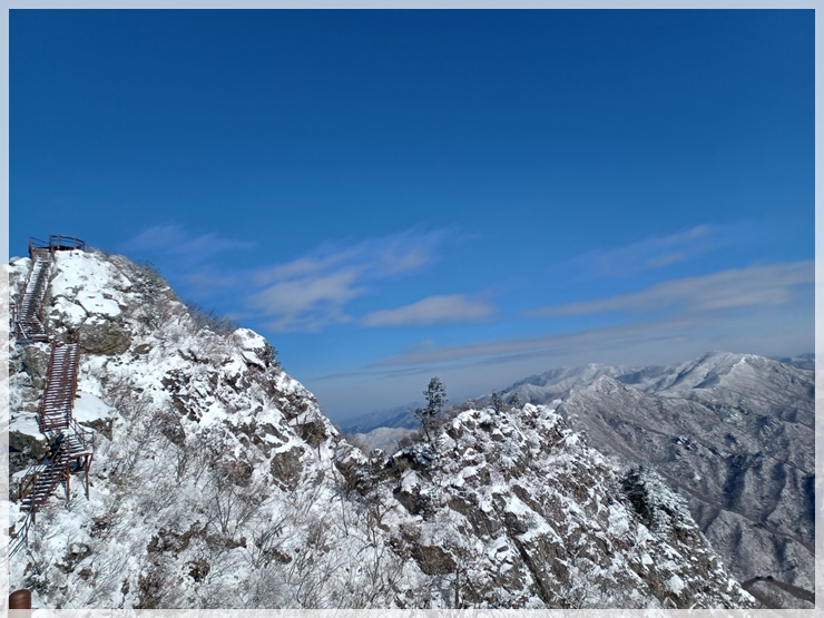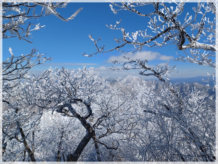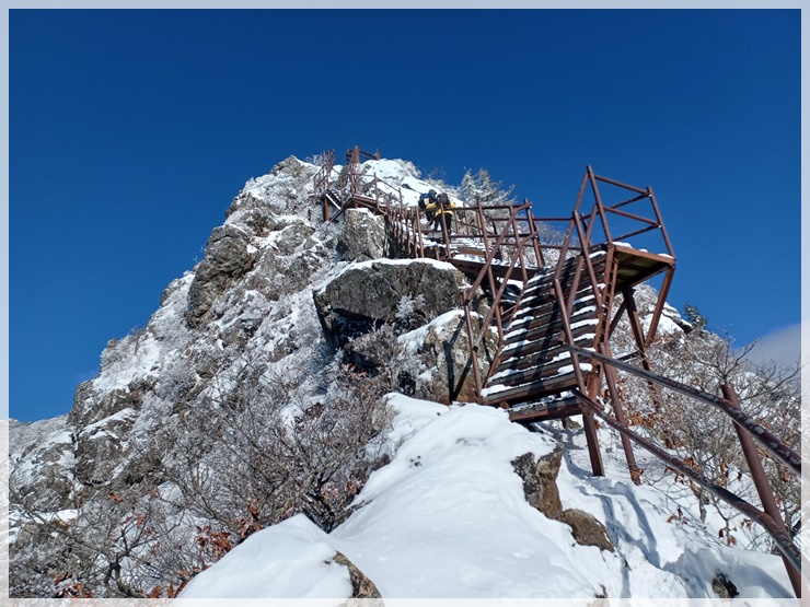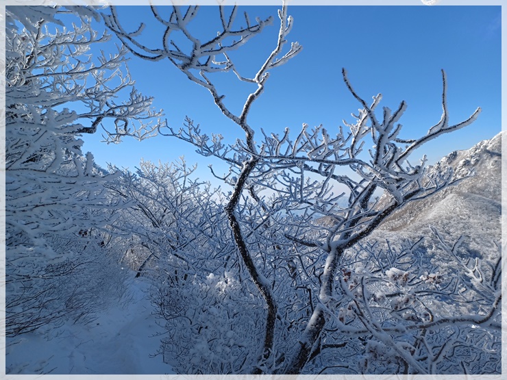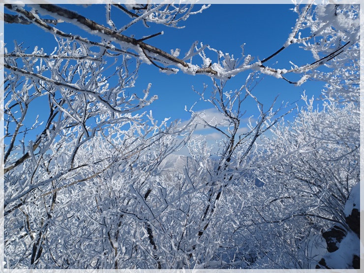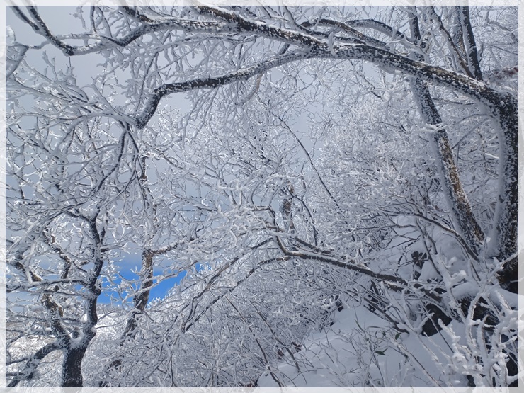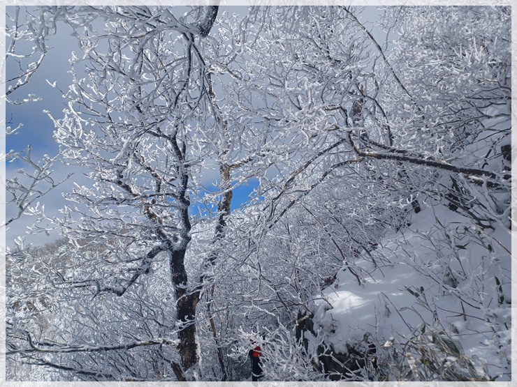 영각사 탐방안내소에는 제법 많은 눈이 쌓여 있고 하늘은 푸르며 바람은 차갑습니다. 남덕유산도 어젯밤 산행이 통제되었다가 해제되었답니다. 영각재 쯤에 올라서니 살을 에이는듯한 칼바람이 있고 환상적인 눈꽃도 피었습니다. 올 겨울 들어 처음으로 눈과 피부로 제대로 된 겨울 맛을 느껴봅니다.