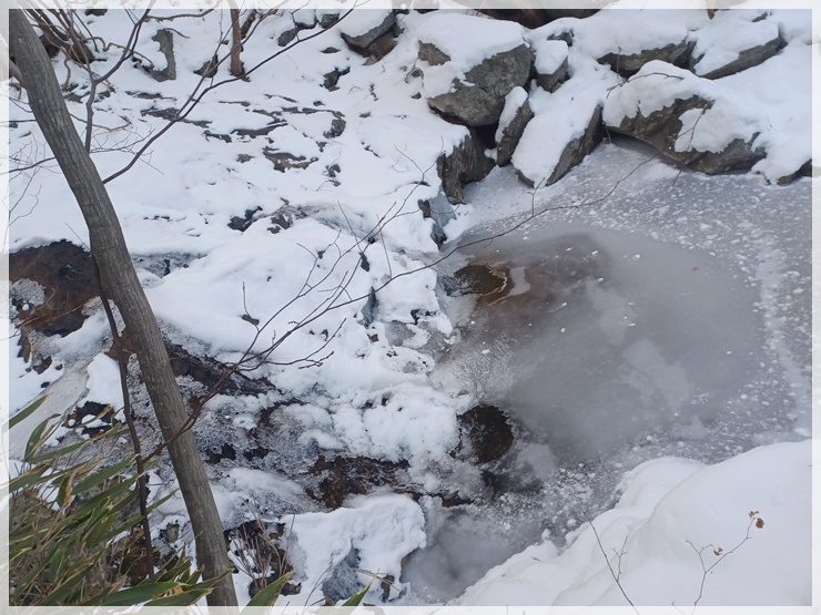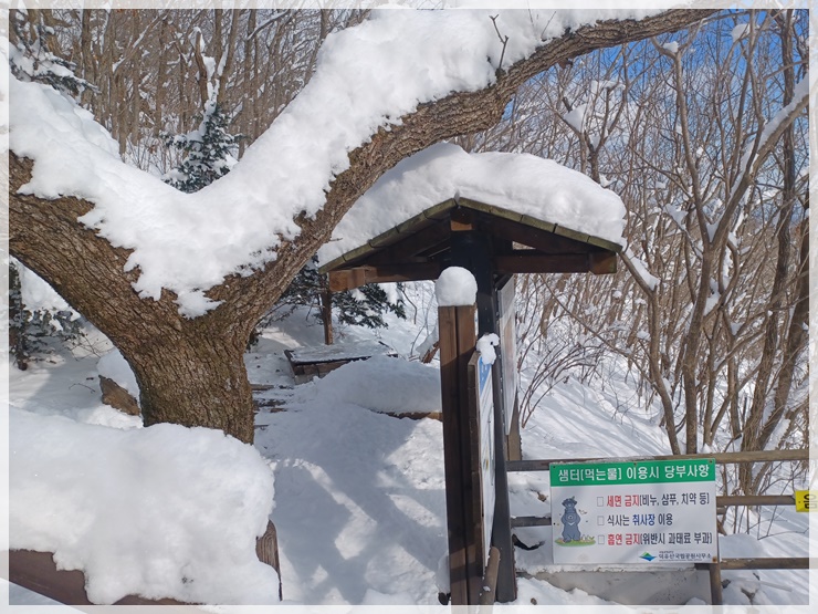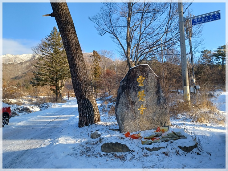 중산리 버스터미널은 얇은 눈이 쌓여있고 탐방안내소 가는 길에 제설차량이 막아서 차량출입을 막습니다. 버스 터미널에서 산행채비를 하고 도보로 올라가려니 제설차량 기사님께서 아마도 산행통제가 되었을 거라며 탐방안내소에 연락해보더니 역시 산행 통제가 맞다 합니다. 빠르게 인터넷 조회해보니 국립공원의 어떤 사이트에도 지리산 산행 출입통제가 되었다는 공지가 없습니다. 억울하지만 돌아서야지요. 그렇다고 그냥 돌아서기에 아쉬워 남덕유산 영각사로 달렸습니다.