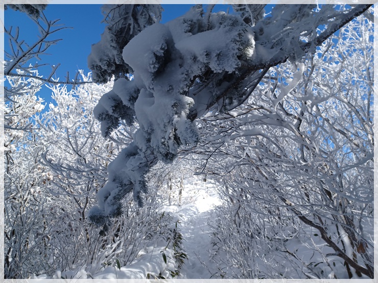 남덕유산 정상에서 월성재까지 그리고 삿갓봉 언저리의 눈 그림은 거의 몽환적입니다. 지리산 산행을 나섰다 예고 없는 산행통제로 말미암아 생각지도 못한 남덕유산의 겨울 속살을 만끽합니다. 꿩을 찾아 나섰다가 봉황을 만나는 횡재를 한 기분입니다. 남덕유가 준 최고의 선물을 눈으로, 가슴으로 받아들였습니다.