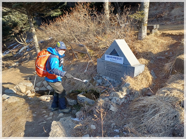 그 곳. 오늘은 겨울이건만 그때와 같이 샘터 물이 펑펑 샘솟고 있습니다. 생각해보면 이제 새로운 도전은 어렵겠지만 그 시절이 너무 그립습니다. 세동치에서 전북학습교육원으로 하산합니다. 풀배낭 짊어진 젊은 산님들이 여럿 올라가는 것으로 보아 틀림없이 그 샘터를 찾아가는 것 같습니다. 너무 너무 부럽습니다.
