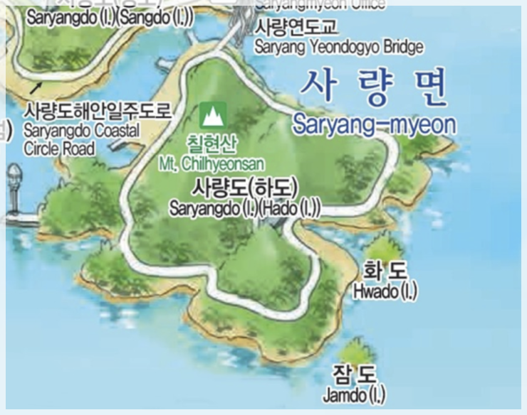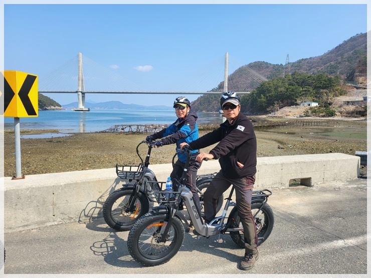 생각지도 않았던 자전거 라이딩으로 사량 하도 일주도로를 한 바퀴 도는 행운을 가졌습니다. 그 맛은 등산보다 더 흥분되고 짭짤하니 맛있었습니다.
