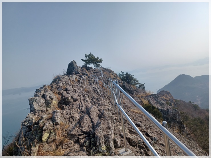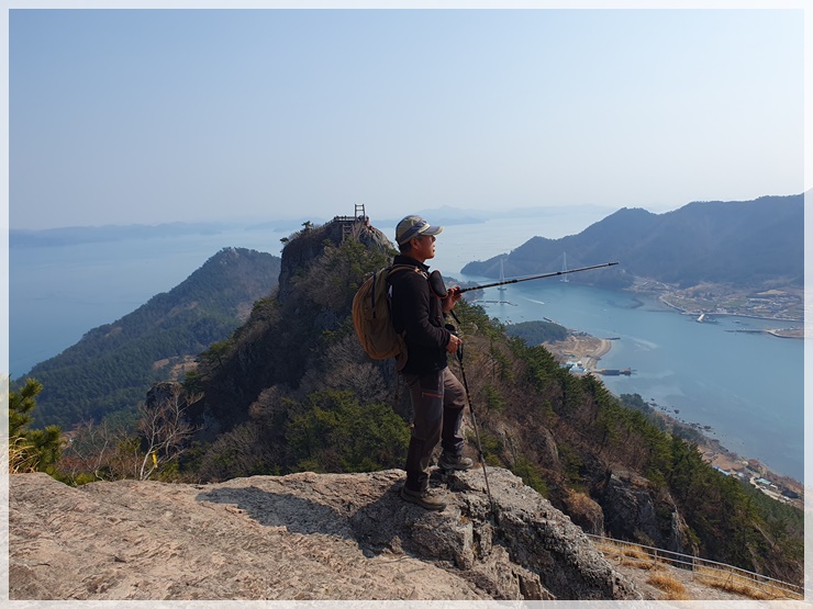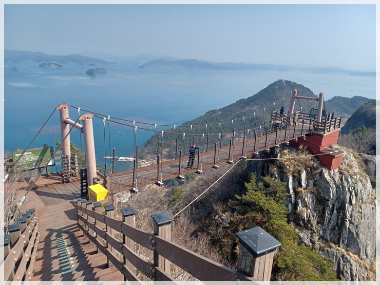 사량도 지리산 정상에는 관광버스 산님들이 먼저 도착해 사진 찍기에 여념 없고 애석하게 지리산 정상의 멋진 소나무가 명을 달리했습니다. 위험천만 달바위와 가마봉도 지났습니다. 옥녀봉 출렁다리에서의 경치를 보기 위해서 많은 산님들이 사량도를 찾는 이유이기도 합니다.