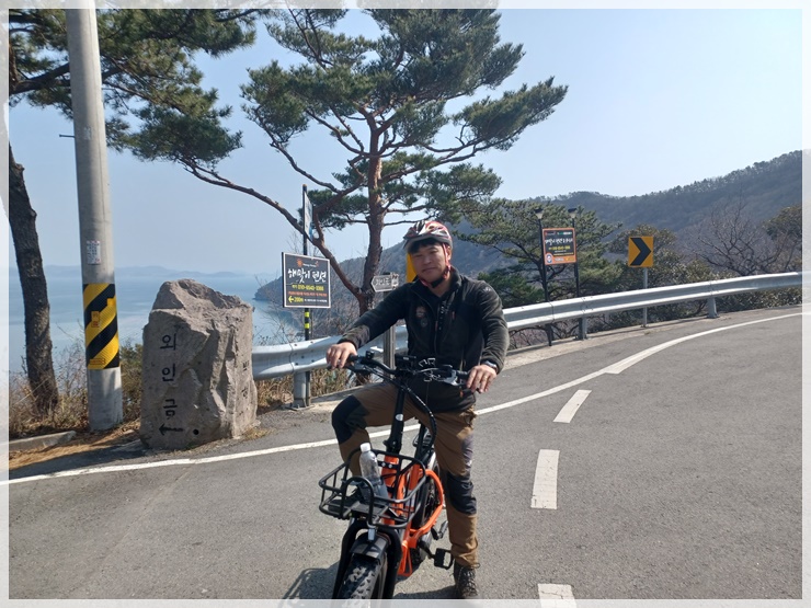 산행을 종료하고 금평항에 도착하니 전동자전거 대여하는 곳이 있습니다. 시간당 1만원입니다. 사량 하도 일주도로를 한 바퀴 돌기로 했습니다. 힘과 속도 레버를 최대 포지션으로 조정하고 내리막길을 달리던 중 뒷바퀴와 핸들의 심한 떨림에 하마터면 큰 사고를 당할 뻔 했습니다. 가까스로 브레이크를 잡고 안도하고 있는데 내리막길에서는 레버 위치를 최소로 놓아야 된다고 자전거 대여소에서 설명을 해주었는데 귀담아 듣지 않아 벌어진 현상이라고 갑성이 말합니다. 타인의 말을 예사로 들어 넘기는 안코의 실수였습니다.