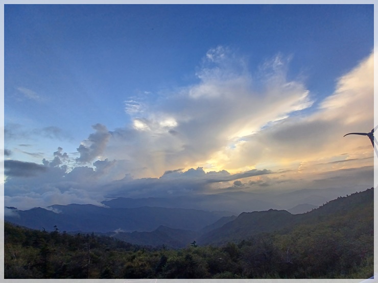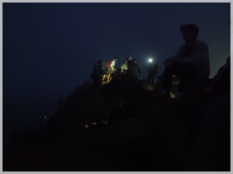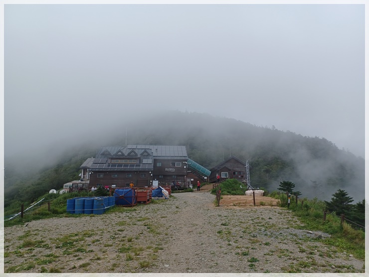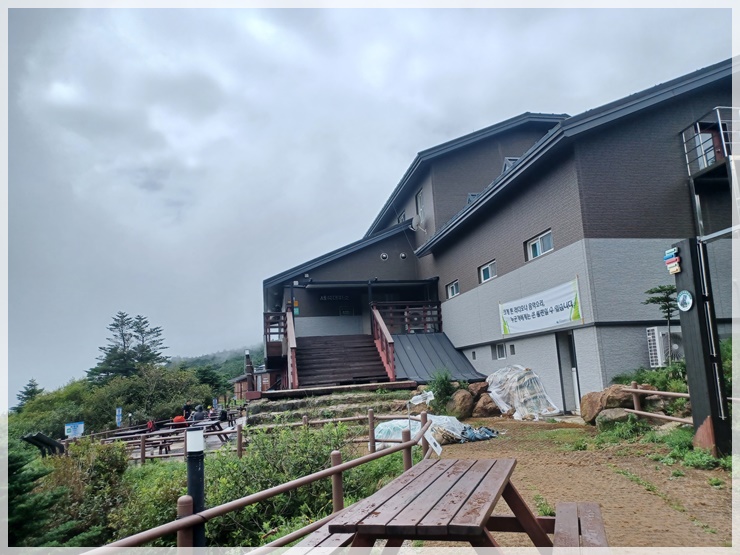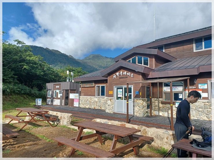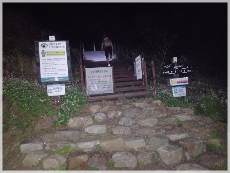 장터목대피소에서 잠자리를 배정받고 야외테이블에 앉아 여유로움 속에 서쪽하늘 해넘이를 기다렸습니다. 하얀 운무가 춤 추며 파란하늘을 열었다 닫기를 하더니 야속하게도 순식간에 어둠 속으로 빨려 들어갑니다. 아쉬움을 뒤로 내일 새벽 천왕봉 일출을 기약하며 대피소 딱딱한 마루바닥에 몸을 뉘었습니다.
