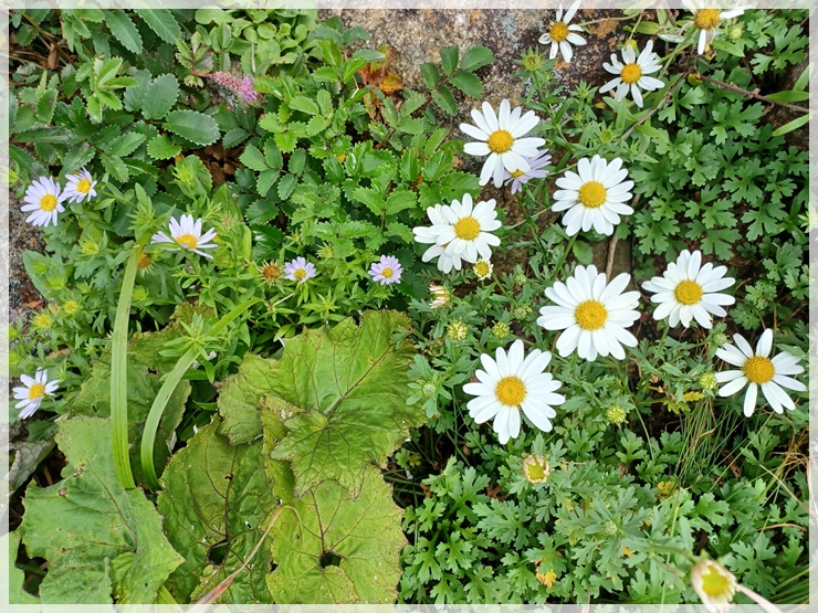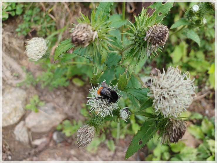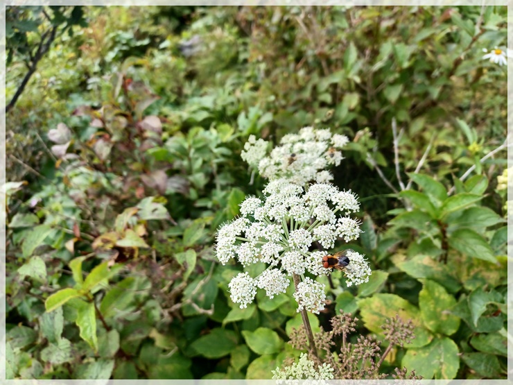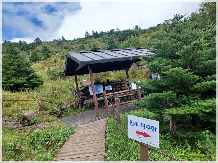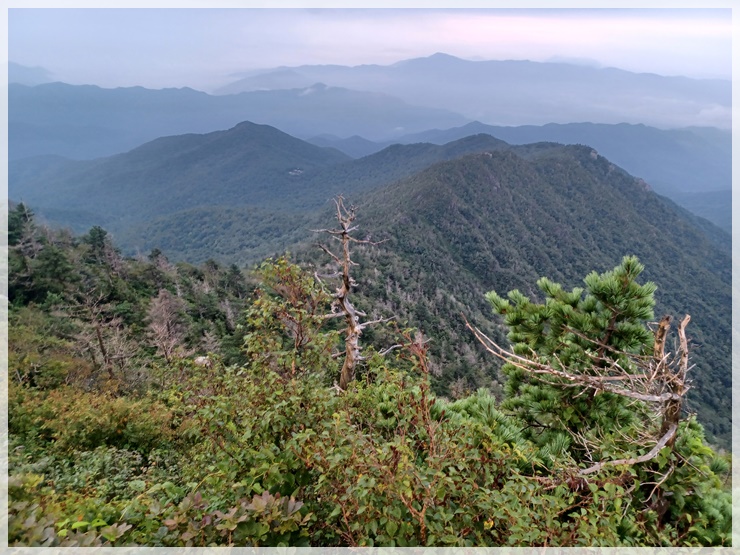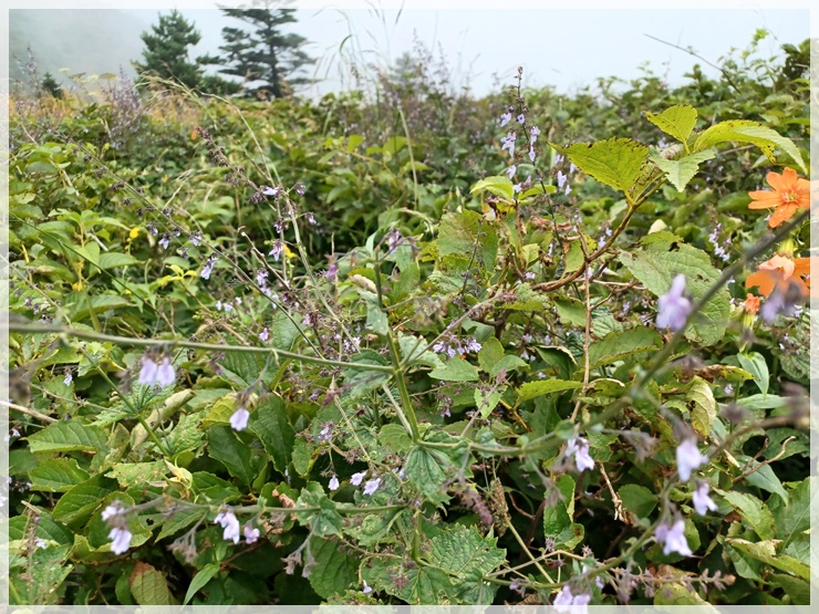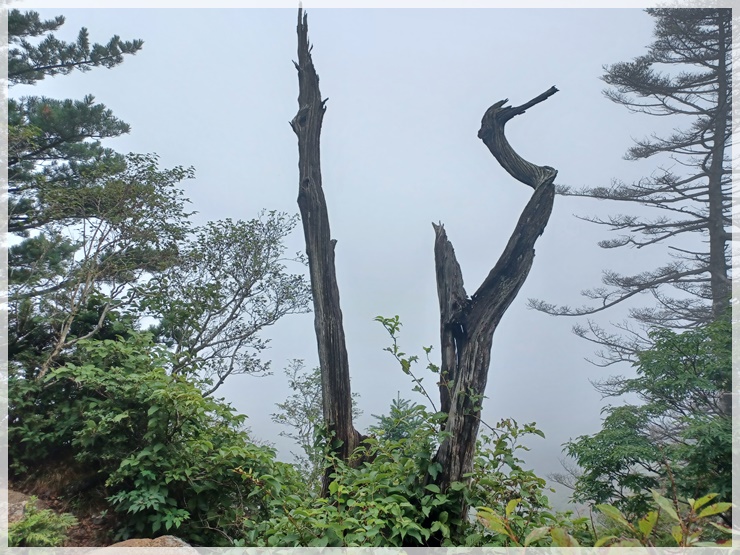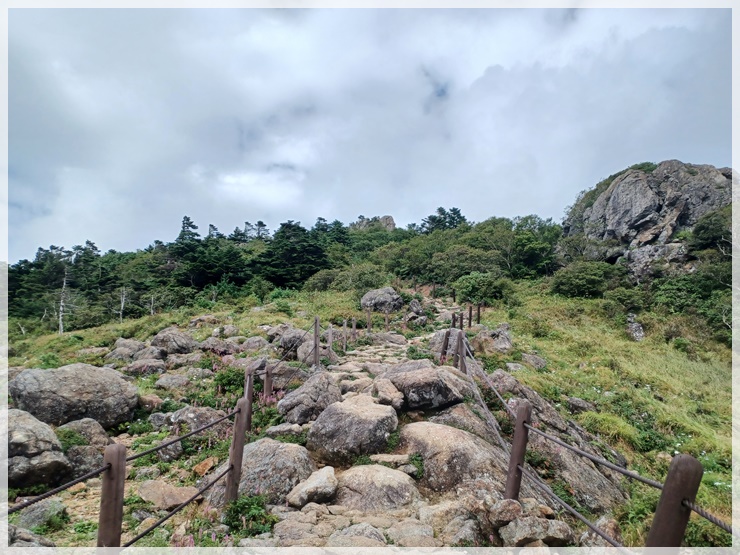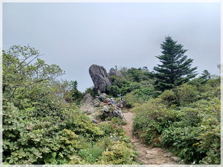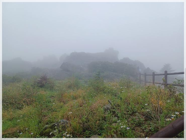 세석대피소 앞 마당에 거대한 포크레인 2대가 나무심기에 열중하고 있습니다. 최근 지구 온난화로 전국의 명산에서 하얗게 말라가고 있는 구상나무를 복원하는 것으로 보입니다. 오늘도 촛대봉은 운무에 갇혔습니다. 다행이 연하봉 근처에서는 하늘이 살짝 열려 야생화들이 천상화원을 이룬 연화선경을 볼 수 있어 행복합니다. 아주 느리면서 힘들지 않은 걸음으로 지금 이 순간을 만끽하며 살포시 걸었습니다.