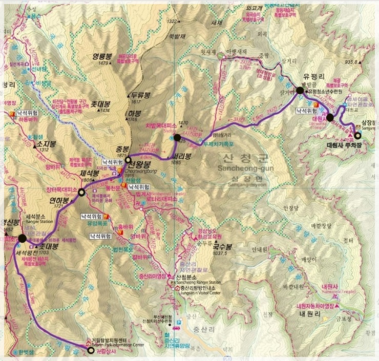 ■ 산행여정 : 거림탐방안내소→세석→장터목대피소(1박)→천왕봉→치밭목→유평→대원사주차장