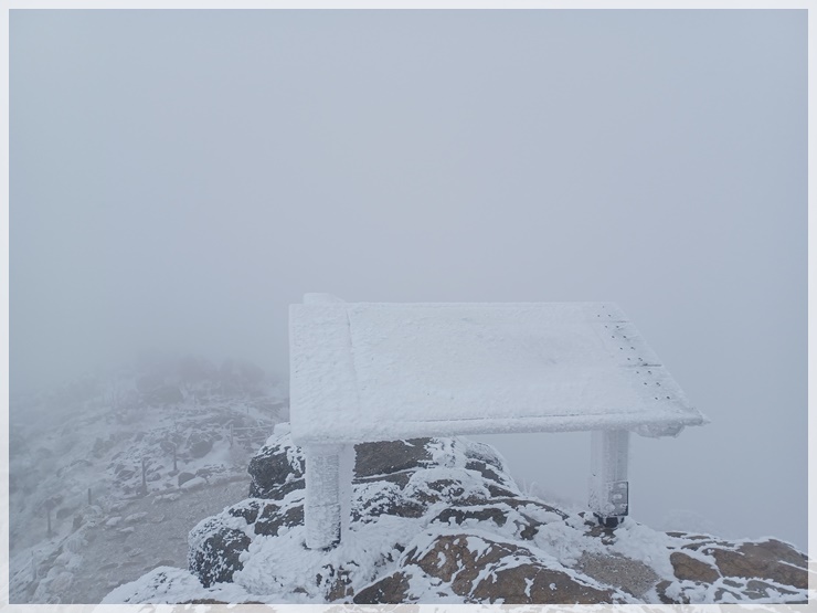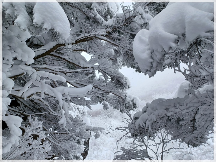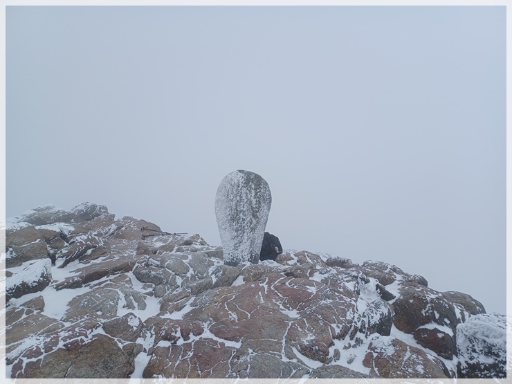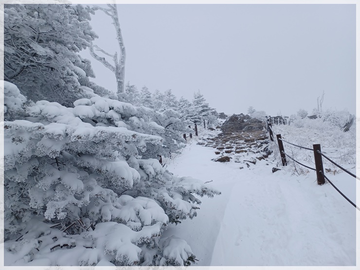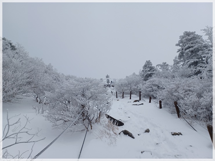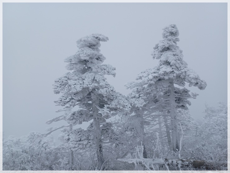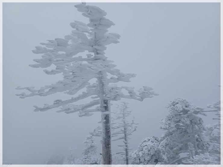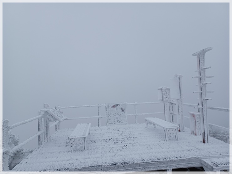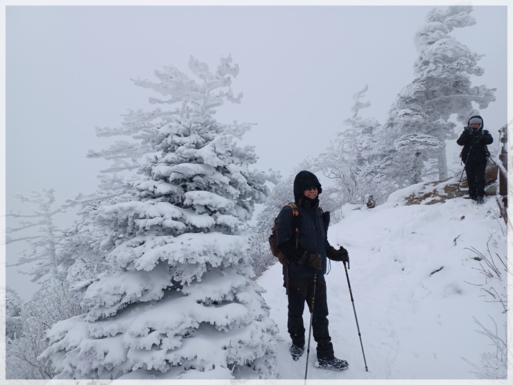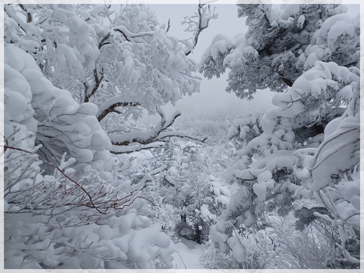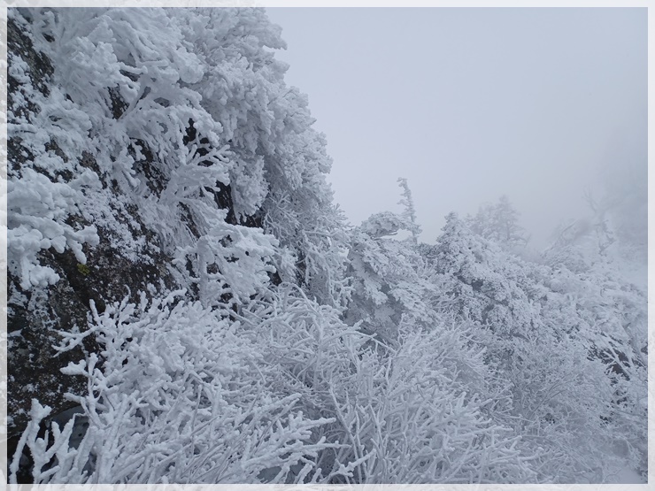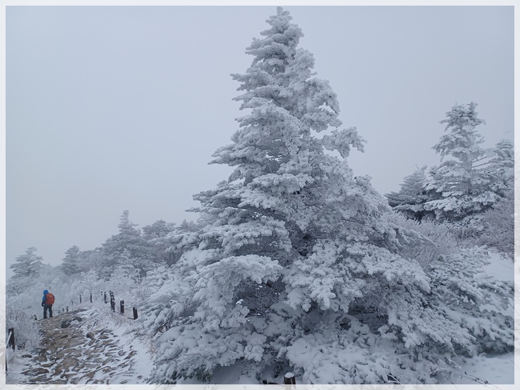 칼바람의 위력이 워낙 매워 천왕봉 정상이 한산합니다. 이마가 터질 것 같고 뺨의 살이 떨어져 나갈 것 같아 후다닥 사진 찍고 장터목으로 향했습니다. 안코는 천왕봉에서 장터목대피소까지의 설경이 우리나라 겨울 산 중 으뜸이라고 생각합니다. 매년 겨울이면 천왕봉을 찾는데 오늘의 설경이 최근 몇 년 중에서 최고라는 생각이 듭니다. 이래서 안코는 천왕봉의 유혹에 빠져 들어 갑니다.