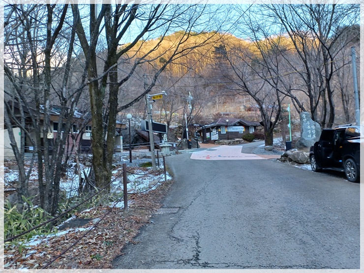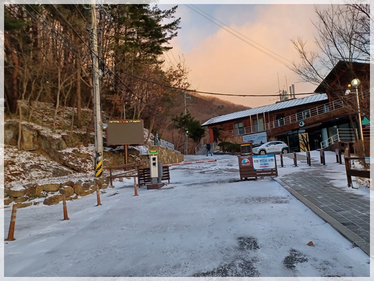 중산리 탐방안내소 앞 주차장 공사가 있어 오르는 중간쯤에서 차량통제로 도로변에 주차시키고 산행을 시작하려니 국공 직원께서 도로바닥이 미끄러우니 아이젠을 착용 하시는 것이 좋을 것이라 합니다. 입산통제가 이른 새벽에 해제된 까닭인지 아니면 날씨가 혹한이라는 일기예보 탓인지 탐방안내소 앞이 너무 한산합니다. 덕분에 산행 내내 편안했습니다.