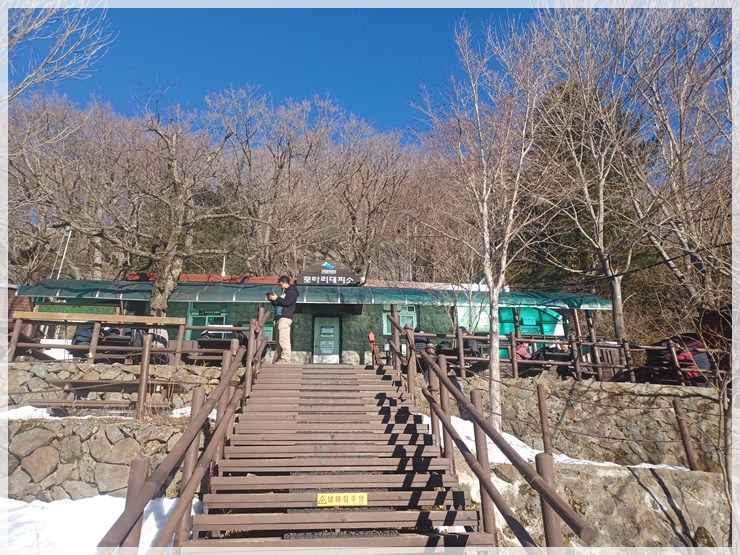 엊그저께 내린 비 영향인지 순두류 계곡에 수량이 풍부하고 물 내려가는 소리가 경쾌합니다. 때는 2월 중순인데 여기 지리산은 거의 초여름 날씨를 방불케 합니다. 그래도 잔설이 있어 아이젠은 필요합니다.