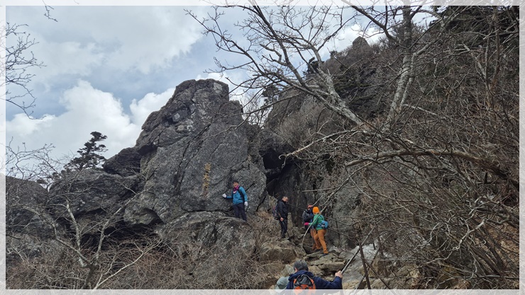 올해 들어 세 번째 천왕봉을 찾아갑니다. 칼바위까지 순조로운 발걸음이 진행됩니다. 망바위 오르는 오르막길에서 덕규 형님 컨디션이 난조를 보입니다. 왕성한 사회활동과 꾸준한 체력단련으로 건강한 60대 후반을 보내는 그런 분이신데 오늘은 무슨 연유인지 많이 힘들어 합니다. 한번도 이런 일이 없었는데 약간 걱정스럽습니다. 천왕봉 바로 아래에서 79세 친구 두 분을 만났는데 그럴 수도 있겠습니다. 나이는 숫자이니까요.