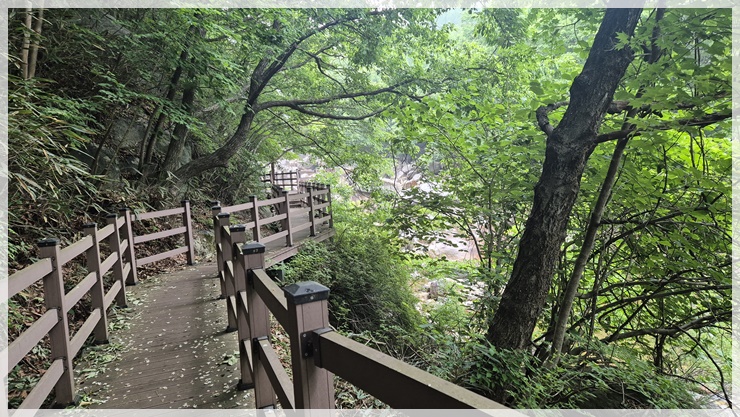 중산리 버스정류장에 승용차를 주차시켜 두었기에 두류삼거리에서 「중산 두류생태 탐방로」를 이용해 중산마을까지 내려가 보기로 했습니다. 중산계곡을 따라 데크로 깔끔하게 조성한 탐방로 길이 예상외로 거리가 멉니다. 이번 한번만 걸어 보는 것으로 만족해야겠습니다.