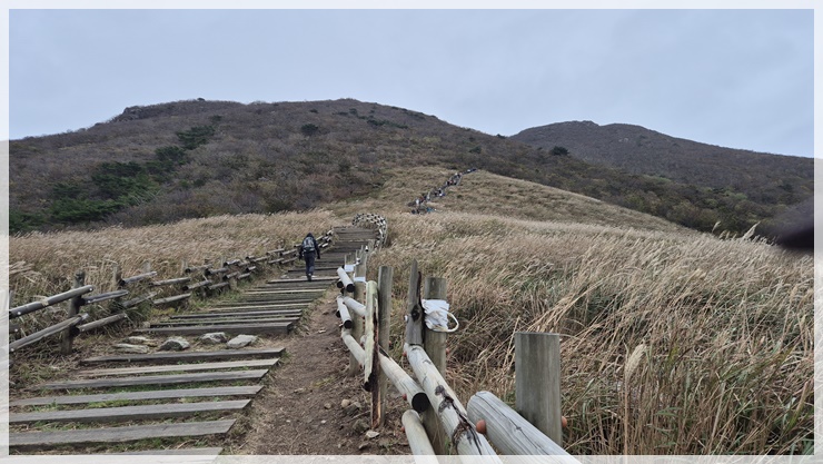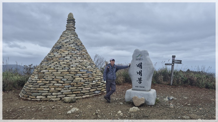 엄청난 맞바람을 맞으며 산행을 시작하고 배내봉 아람약수터를 지나 배내봉까지 나무계단 길을 올라갑니다. 배내봉은 키 높이가 1,000m 를 넘지 못해 영남알프스에서 제대로 된 명함을 받지 못했나 봅니다. 등로변에는 철모르는 철쭉이 분홍색 꽃망울을 열었는데 금방 겨울로 접어들 텐데 어쩔는지 모르겠습니다.